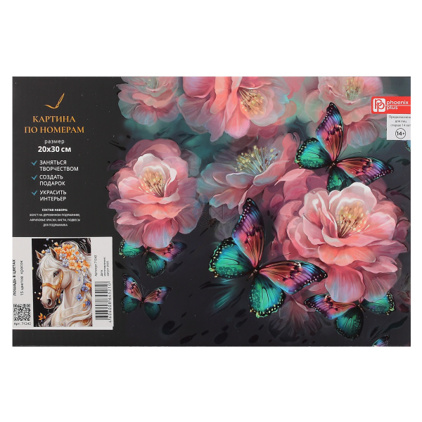 Картина по номерам 20*30 Феникс Лошадь в цветах холст на подрамнике 71242