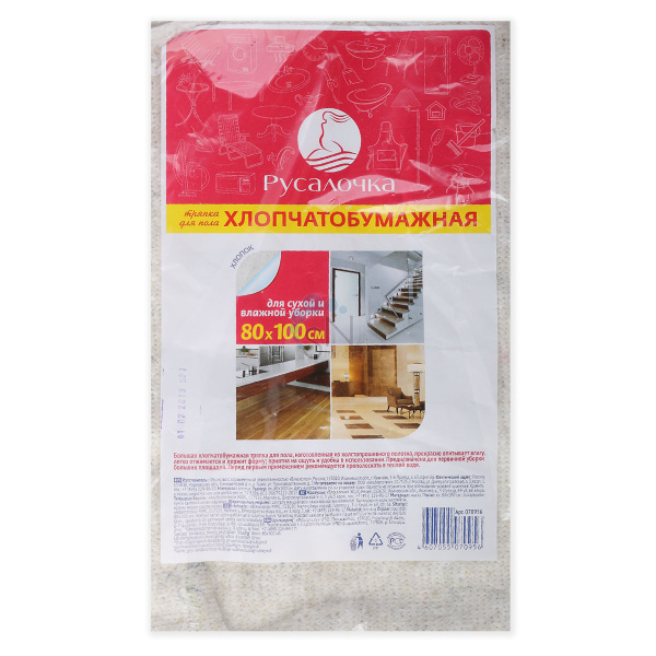 товаров для офиса и школы Тряпка для мытья пола 80*100 см 100% хлопок серая INSULA Оптимум 990419