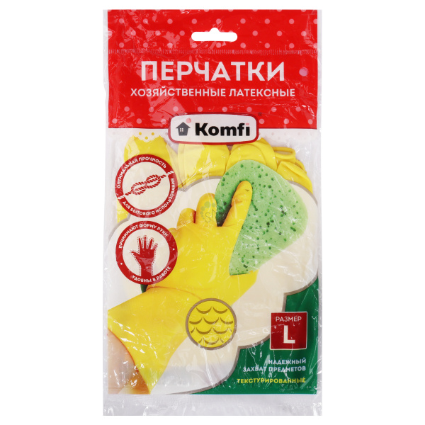 товаров для офиса и школы Перчатки латексные 1 пара (2 шт) размер L Komfi 14694 желтые