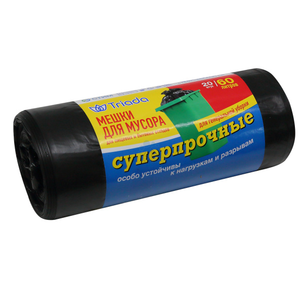 Мешки для мусора 60 л в рулоне 20 шт 62*68 см полиэтилен 22 мкм Triada 990938 черные