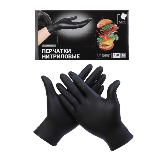 Перчатки нитриловые 50 пар (100 шт) размер M неопудренные черные